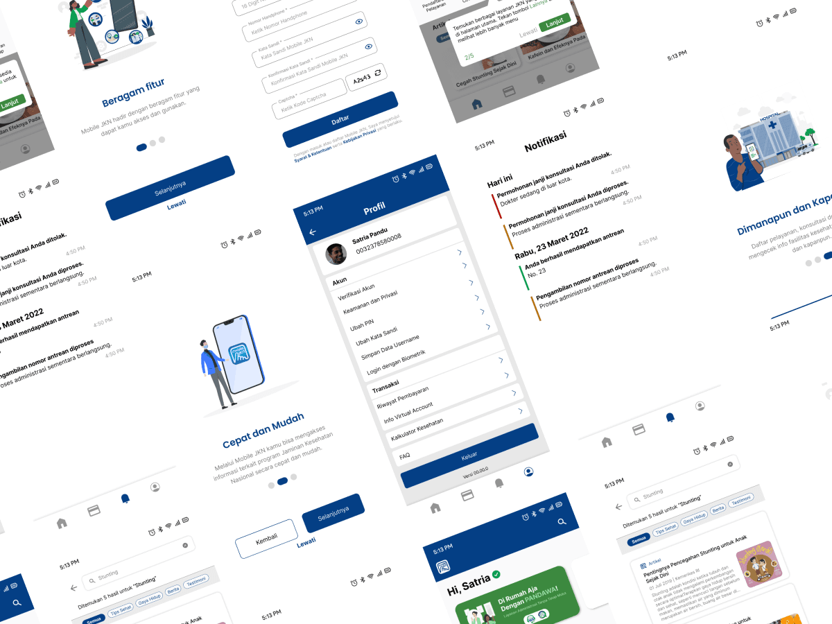 Indonesian Health Ministry develop an app called Mobile JKN. Lately found out that Mobile App had several things to improved such as confusing usage and registration flow, innefective buttons, and some unorganize informations. Then me and my team revamped this app for better experience.